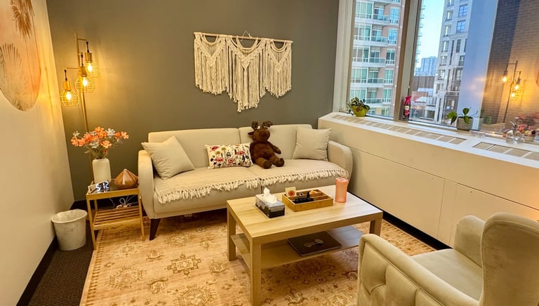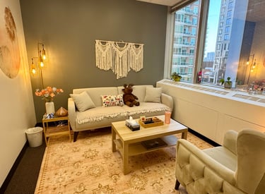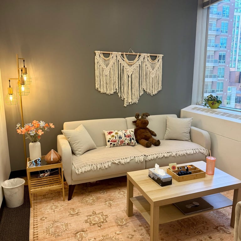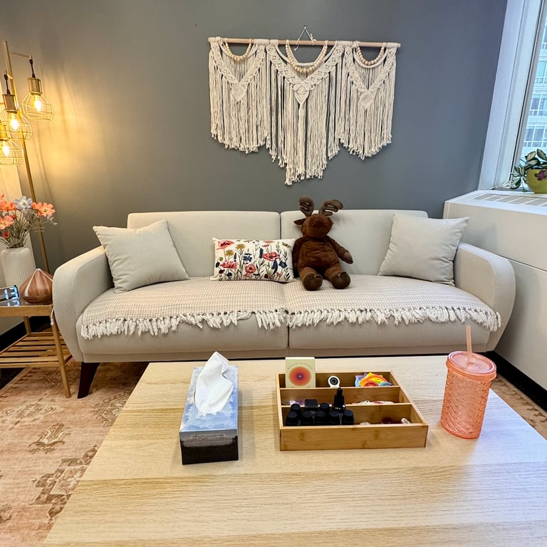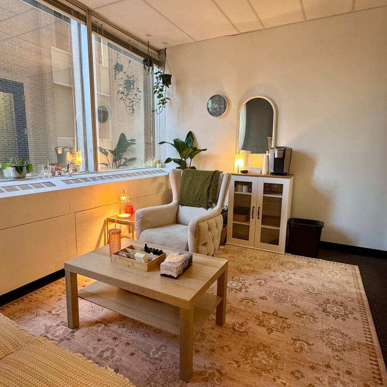 Every corner is designed to foster a sense of safety and presence, making it easier for you to slow down, feel seen, and focus on your therapeutic journey.
