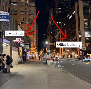 The office is located at 1235 Bay Street, downtown Toronto, easily accessible by public transportation or personal vehicle.